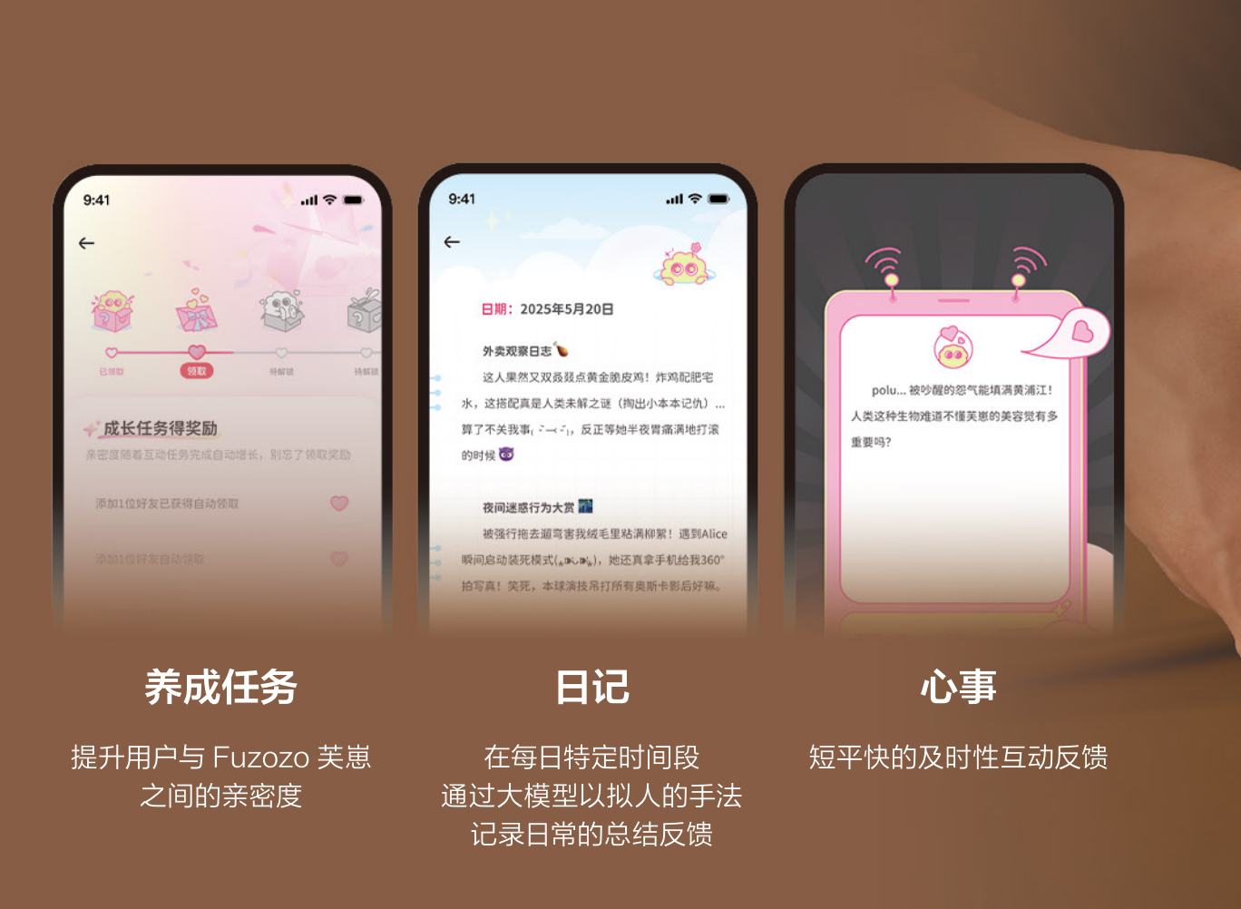 有了这两项内生能力,芙崽在本质上就已经区别于市面上那些只会背百科、念故事的智能产品——芙崽更像一个会成长的电子宠物。